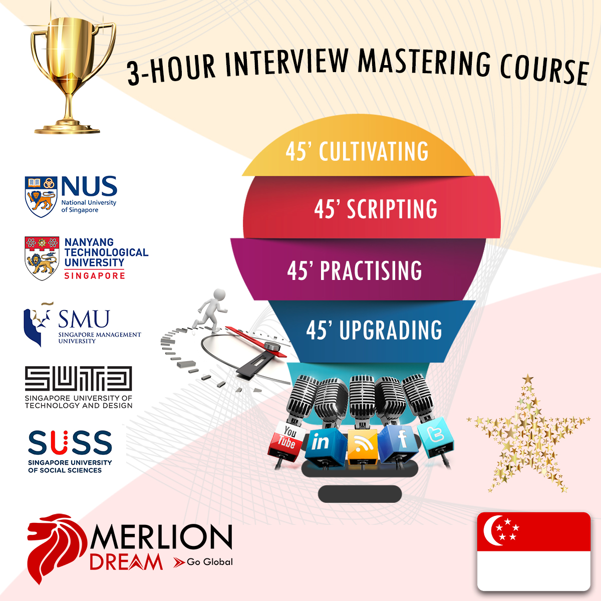 03-HOUR INTERVIEW COURSE là sản phẩm tinh hoa của Merlion Dream nhằm hỗ trợ hiệu quả nhất cho học sinh trong giai đoạn chuẩn bị phỏng vấn các loại học bổng của Singapore. Đây là khóa học ưu việt được xây dựng dựa trên bề dày trải nghiệm và kinh nghiệm đã đúc kết của các chuyên gia về giáo dục Singapore. Chương trình hỗ trợ 2 phân loại ứng viên: